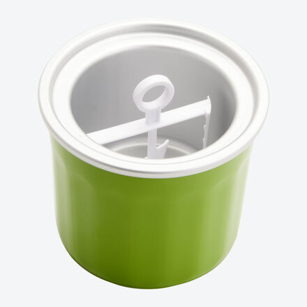 Mit einem Handgriff verwandelt Sie den Brotbackautomaten 967L01 mit diesem Zubehör in eine funktionelle Eismaschine. Im Eisfach vorgekühlt lässt sich cremiges Eis oder fruchtiges Sorbet herstellen. Eisbehälter aus hochwertigem Kunststoff, Ø 14,2 cm, 12 cm hoch, fasst 700 ml