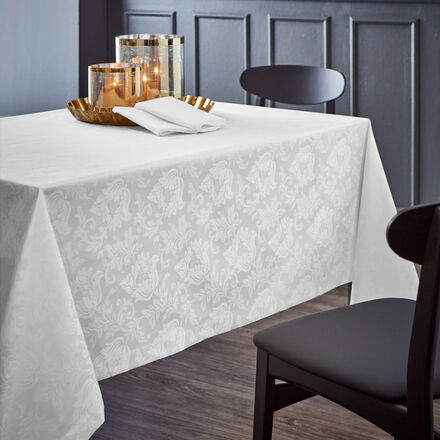 Exquisite Tischdecke für festliche Anlässe Mit dezentem, jacquardgewebtem Muster Aus 100 % veredelter Baumwolle Florales Ton-in-Ton-Dessin Passt sehr gut zu allen Geschirr-Dekoren und Dessins Gehört zu einer mehrteiligen Tischwäsche-Serie Mit dem edlen Ton-in-Ton Jacquard haben Sie immer die perfekte Tischwäsche für festliche Anlässe. Dezent ornamental gemustert passt sie ausgezeichnet zu allen Geschirr-Dekoren und individuellen Dekorationen, um Ihren Tisch persönlich und festlich zu gestalten. Der seidige Glanz der veredelten Baumwolle und die hochwertige Verarbeitung mit Gehrungssaum geben dem fein gedeckten Tisch seinen exquisiten Look. Die Tischdecke mit feiner Textur und festlichen Verzierungen bietet Ihnen die Möglichkeit, Ihr Tischarrangement individuell zu gestalten. Passend dazu bieten wir einen Tischläufer (Nr. 113HZ23), 2 Servietten (Nr. 113HZ21) und 2 Tischsets (Nr. 113HZ22) an. Aus 100 % feiner, merzerisierter Baumwolle. Feinwäsche 30 °C.