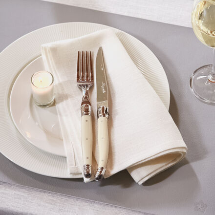 2er-Set hochwertige Leinen-Servietten Unifarben weiß Charakteristisch, eleganter Stoff Passt zu jedem Geschirr und allen Dekorationen Langlebige Qualität Festlich eleganter Look Die Wirkung der weißen Leinentischwäsche ist enorm: Aus Ihrem normalen Esstisch wird eine festliche Tafel Die Servietten runden das Bild einer perfekt gedeckten Tafel ab Leinentischwäsche ist die ursprünglichste Form von Tischschmuck und sieht von Natur aus edel und lässig elegant aus Als unifarbene Tischwäsche mit dezenten Strukturen bietet sie eine erstklassige Unterlage für jedes Geschirr und lässt es perfekt zur Geltung kommen Dabei ist das Gewebe besonders reißfest und strapazierfähig und lässt sich in Waschmaschine und Trockner schnell für den nächsten Einsatz auffrischen Sorgfältig gearbeitet und mit Gehrungssaum konfektioniert Zur hochwertigen Leinen-Serie gehören noch 2 Tischsets (Nr 113HZ26), ein Tischläufer (Nr 113HZ27) und eine Tischdecke in verschiedenen Formaten (Nr 113HZ28).