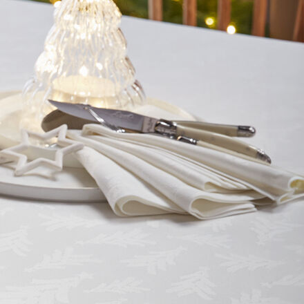 Unifarbene Servietten mit Tannenbaum-Motiv Unentbehrliche Accessoires für den festlichen Tisch Fleckgeschütztes Gewebe Edle Leinenoptik mit Schattierungen Pflegeleicht waschbar bei 60 °C Die Tischwäsche-Serie mit unifarbenem Tannenbaum-Motiv ist ein Basis-Accessoire für die Weihnachtszeit Das Ton-in-Ton-Motiv bildet eine tolle Grundlage für festliche Tischdekorationen oder farbenfrohes Geschirr Die Leinenoptik mit edler Schattierung entsteht durch die leicht unterschiedliche Farbe von Kett- und Schussfaden Das Gewebe ist mit einem speziellen Fleckschutz ausgerüstet, Flüssigkeiten können einfach abgetupft werden So können Sie die unempfindlichen Servietten über die Weihnachtstage ausgiebig nutzen, ohne Sorgen vor Flecken auf den Servietten oder Ihrer Kleidung haben zu müssen Zum Erhalt des Fleckschutzes, der durch mechanischen Abrieb in der Waschtrommel verloren gehen kann, empfehlen wir die Wäsche im Wäschesack (oder Kissenbezug).