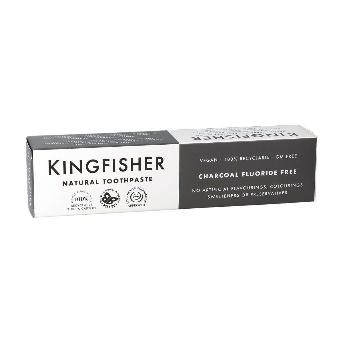 Fluoridfreie Zahnpasta mit Aktivkohle für weiße Zähne. Von Kingfisher. Schmeckt nach Minze & Zitrone. ? Ohne Mikroplastik, fluoridfrei & vegan ?.