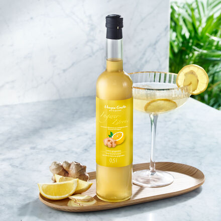 Aromatisches Konzentrat Mit spritziger Zitrone und frischem Ingwer Veredelt Longdrinks, bunte Cocktails Passt zu Eis, Salaten, Smoothies, Desserts In unserer Manufaktur veredeln wir spritzige Zitronen mit frischem Ingwer zu diesem köstlichen Fruchtkonzentrat. Der Anwendung in der feinen Küche sind kaum Grenzen gesetzt. Der ergiebige Würzsirup (empfohlenes Mischverhältnis 1:8) bereichert Sekt oder Prosecco als Longdrink, erfrischt mit sprudelndem Mineralwasser oder veredelt bunte Cocktails. Einige Tropfen Zitronen-Ingwer-Sirup verfeinern Desserts, aromatisieren Wasser- oder Sahne-Eis, geben Salatsaucen einen fruchtigen Kick, würzen Joghurt, Quark, Smoothies. Im Winter aromatisiert er Tee, Punsch, Glühwein. Rein natürliche Zutaten, ohne jegliche Farb-, Aroma- oder Konservierungsstoffe. Rezeptur und Herstellung Hagen Grote Exklusiv