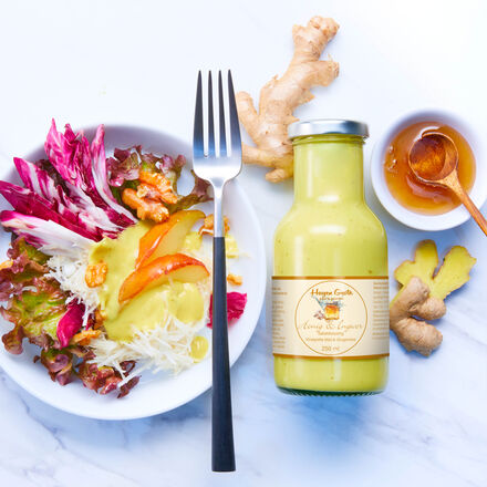 Reichhaltiger Geschmack Ausgewählte Zutaten Cremige Textur Herrlich frische Note Perfekt zu Gemüse- und Blattsalaten, Waldorfsalat Hergestellt auf Basis hochwertiger Öle und ausgewählter Zutaten, überzeugen mit kräftigem, reichhaltigem Geschmack und seidig glatter, cremiger Textur. Honig & Ingwer: Süße mit dezenter Schärfe, ideal zu Gemüse- und kräftigen Blattsalaten sowie Waldorfsalat. Hagen Grote Exklusiv