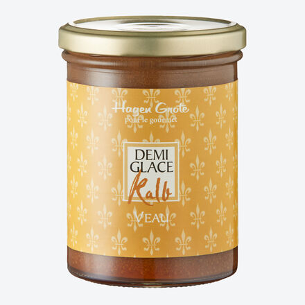 Über 50 kg Fleisch, Fisch oder Geflügel sind notwendig für nur 1 kg Demi-Glace Zuerst wird aus Fleisch, Knochen, Röstgemüse, Wein und Gewürzen ein klassischer Fond zubereitet Nach dem Entfetten beginnt das Reduzieren Aus einer riesigen Menge Fond entsteht durch Einkochen dieses unglaubliche Konzentrat Rühren Sie ein oder zwei Löffelchen Demi-Glace in Saucen, Suppen oder Ragouts Sofort entwickelt sich eine wunderbar intensive Duft- und Geschmacksfülle, die Sie mit anderen Mitteln nicht erreichen können Unsere Demi-Glace enthält keinerlei „Chemie“ Absolut tabu sind im Gegensatz zu Industrieprodukten übliche Geschmacksverstärker, Farb- und Konservierungsstoffe oder Glutamate (enthält Hefeextrakt) 400 g Glas, durchschnittliche Verdünnung 20- bis 30-fach, mindestens ein halbes Jahr lagerfähig Nach dem Öffnen kühl aufbewahren und innerhalb von 6 Wochen verbrauchen Eingefroren 2 Jahre haltbar Im Tiefkühlfach konserviert bleibt Demi-Glace zähflüssig und jederzeit portionierbar.