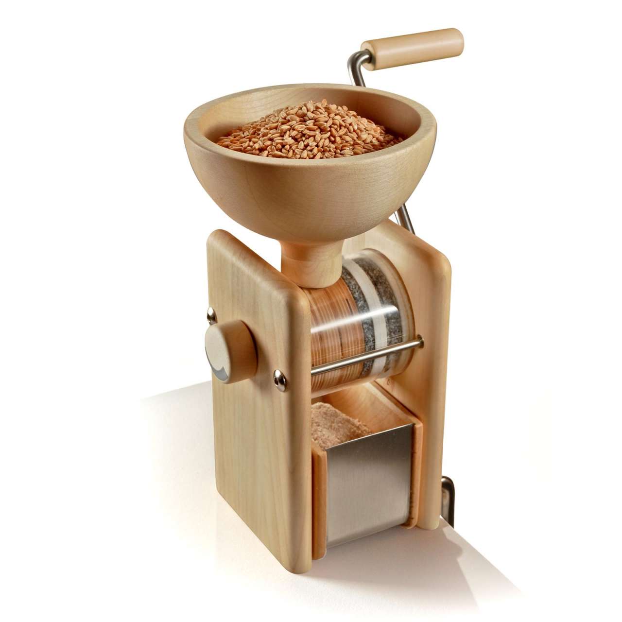 Handgetreidemühle zum Mehl selber mahlen. Leichtgängig mit Keramikmahlwerk & Tischhalter, Ahornholz massiv ? KoMo Handmühle ▻ kaufen.