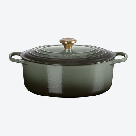 Klassiker der feinen Küche Überragende Koch-Eigenschaften Wunderschön zum Servieren Für alle Zubereitungsarten Profi-Köche schwören auf Le Creuset Seit 1925 fertigt Le Creuset in Frankreich hochwertigstes Kochgeschirr aus kratzfest emailliertem Gusseisen. Es nimmt Wärme schnell auf, speichert sie lange und gibt sie gleichmäßig weiter. Perfekt gelingt in diesen Töpfen das Anbraten bei hohen Temperaturen, das langsame, sanfte Schmoren oder auch Überbacken. Große Griffe und elegante, goldene Edelstahlknäufe ermöglichen sichere Handhabung auch mit Topfhandschuhen. Deckel-Stabilisatoren verhindern Klappern und Verrutschen. Mit dauerhaft glänzender Emaillierung ist es ideal als Serviergeschirr. 6,3 l Inhalt, 40,5 x 25 x 18 cm (B/T/H). Bitte nennen Sie Ihren Farbwunsch: Bordeaux oder Artischocke (mit Farbverlauf).