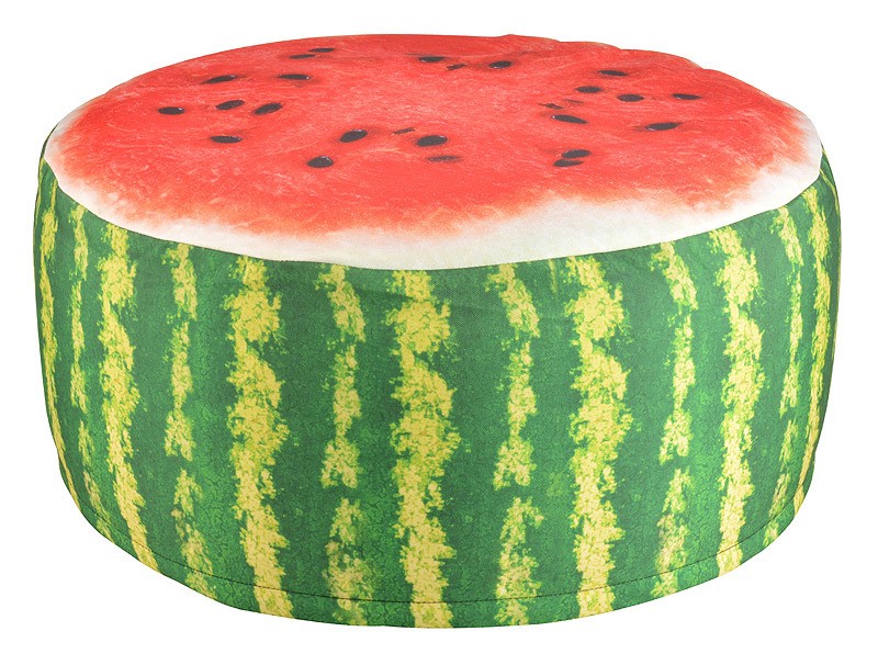 Outdoor Sitzkissen in total verrückter Melonen-Optik – Dieses „Melonen-Scheibchen“ macht Lust auf Sommer, Sonne, …Obstsalat (?!) und ist ein exotisches Accessoire für Garten, Camping oder der nächsten Pool-Party! Dieses originelle Outdoor-Kissen besteht aus einem aufblasbaren Luftkissen und einem Bezug in Melonen-Optik. Blasen Sie das Luftkissen nur zu 90% auf, um den Stoffbezug aufziehen zu können. Der wasserabweisende Bezug ist aus wiederstandsfähiger Kunstfaser gefertigt und eignet sich hervorragend für den Gebrauch in der freien Natur! Der abnhembare Bezug mit Reißverschluss ist aus 100 % Polyester und waschbar. Max. Belastung: ca. 100 kg. Maße: (Ø/H) ca. 55 x 28 cm.