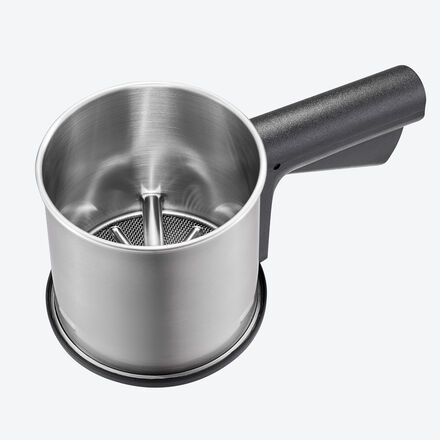 Für besonders feine Ergebnisse Komfortable Einhandbedienung Mit Deckel zur Aufbewahrung Inhalt 400 g Mehl, 300 g Puderzucker Besonders feine und gleichmäßige Ergebnisse liefert das feinmaschige Sieb. Mehl, Puderzucker, Kakaopulver und andere Zutaten tragen so zu einer absolut gleichmäßigen Teigkonsistenz bei. Einfaches Dosieren durch komfortable Einhandbedienung. Mit Deckel zum Schutz vor Feuchtigkeit bei der Aufbewahrung. Edelstahl/Kunststoff, 20,5 x, 10,5 x 10 cm (B/T/H), Inhalt 400 g Mehl oder 300 g Puderzucker.