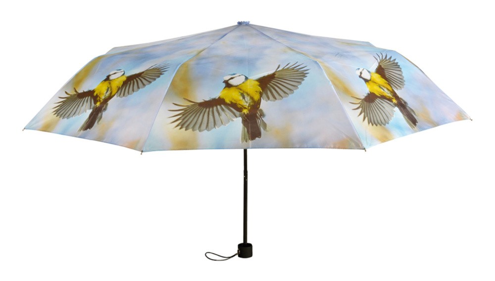 Bunter Regenschirm mit auffälligem Vogel-Motiv! Dieser Regenschirm sollte bei langen Herbst-Spaziergängen nicht fehlen und ist ein unverzichtbares Accessoire an regnerischen Tagen! Praktisch verstaubar in der transparenten Kunststoffhülle mit Aufhänger. Das bunte Motiv fällt auf und verleiht dem Schirm eine besonders originelle Note. Maße zusammengefaltet: 23 cm lang. Maße aufgespannt: (H/Ø) ca. 55 x 100 cm.