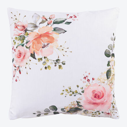 Romantische Kissenhülle mit farblich abgestimmtem Rosen-Arrangement
