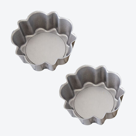 Tarteletteformen mit Hebeboden Einfache, unversehrte Entnahme Nichts backt an oder zerreißt Optimale Hitzeverteilung Perfekt für süße und herzhafte Tartelettes Die Bodenplatte lässt sich mit dem fertigen Gebäck ganz einfach von unten nach oben herausdrücken. Alles gleitet problemlos heraus, bleibt ansehnlich und unversehrt. Ideal für süße und herzhafte Tartelettes. Metall, 3 cm hoch, dauerhaft antihaftbeschichtet, dekorativer Rand, Handwäsche empfohlen.