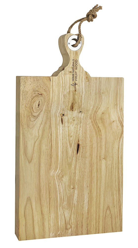 Rustikales und hochwertiges Schneidbrett aus edlem Mangoholz – Ein praktikes und optisches Highlight in jeder Küche! Das Schneidbrett ist in schwerer Qualität aus Mangoholz gefertigt und sieht wunderschön rustikal aus. Der formschöne Griff mit Kordel zum Aufhängen macht dieses Brett besonders praktisch und originell. Das Brett kann beidseitig verwendet werden und ist somit das perfekte Accessoire für die Küche. Maße mit Griff: (L/B/H) ca. 48 x 27 x 4 cm. Maße Schneidfläche: (L/B) ca. 38 x 27 cm.