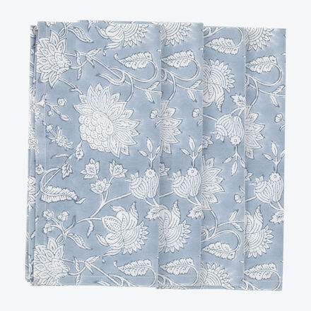 4er-Set Baumwollservietten Motiv Indien Rose in Hellblau/Weiß Handwerklich gefertigt Handbedruckte Unikate Manufakturarbeit Die Tischwäsche und Kissenhüllen sind aus reiner Baumwolle gefertigt Jedes Teil wird von Hand mit einem Holzstempel nach jahrhundertealter Tradition bedruckt Die Muster entstehen in Zusammenarbeit mit lokalen Kunsthandwerkern und Familienbetrieben Der gesamte Prozess – vom Schneiden der Stempel bis zum Druck – erfolgt von Hand und ist besonders umweltschonend Kleine Unregelmäßigkeiten machen den Charme dieses Handwerks aus und jedes Teil zu einem Unikat Die Stoffservietten kommen in einem Set von 4 Stück und sind mit dem Motiv „Indien Rose“ in Hellblau/ Weiß in Blockprint bedruckt Die „Indische Rose“ ist ein klassisches Motiv in der Textilkunst – insbesondere in indischen Blockdrucken – und steht symbolisch für Sinnlichkeit, Schönheit und spirituelle Tiefe In Europa wurde es spätestens im 17/18.
