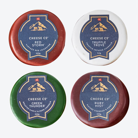 Klassischer Cheddar Aus frischer, regionaler Milch Hergestellt nach traditionellem Rezept Aus einer Käserei in Nordwales 18-20 Monate gereift Aus frischer, regionaler Milch entsteht dieser feine Käse in mühevoller Handarbeit nach traditionellen Rezepten in einer kleinen Käserei in Nordwales. Red Storm: Klassischer Cheddar, komplex-süßliches Aroma mit nussigen Noten, charakteristische orange Farbe, 200 g. Truffle Trove™: Cremig-weich und würzig, affiniert mit schwarzem Sommertrüffel (Tuber aestivum Vitt), 150 g. Green Thunder: Herrlich abgeschmeckt mit Knoblauch und frischen Gartenkräutern, 200 g. Ruby Mist: Reifer, würzig-süßer Cheddar mit intensiven Port- und Brandweinnoten, 200 g. 18-20 Monate gereift. Rein natürliche Zutaten, ohne jegliche Farb- und Konservierungsstoffe.