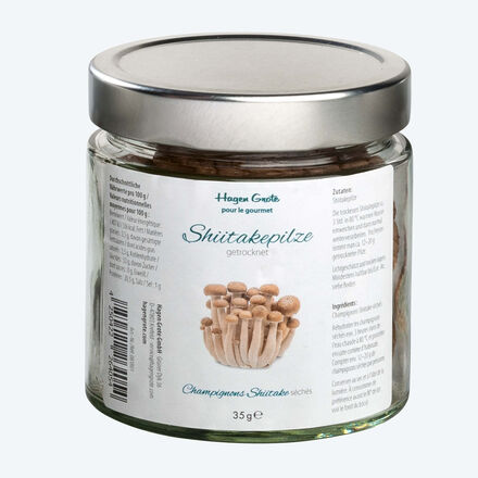 Ganze Shiitakeköpfe Handverlesene Spitzenqualität Intensiv im Aroma und Geschmack Sorgfältig geschützt im Aromaglas Ideal zu asiatischen Gerichten und Eierspeisen Shiitake-Pilz: Gesunder Gourmet-Pilz in herausragender Spitzenqualität Aroma und Geschmack getrockneter Pilze sind ausgeprägter als bei frischen Pilzen Für eine Portion benötigen Sie nur 12 bis 20 g, die durch Rehydrierung (Wässern) wieder bis zu 200 g ergeben Nur die besten Shiitakepilze werden für uns gesammelt, handverlesen und in Gläser gefüllt Der Shiitake-Pilz überzeugt Feinschmecker mit viel Umami (der fünften Geschmacksrichtung) und seinen gesunden Eigenschaften In der Traditionellen Chinesischen Medizin gilt er als Heilpilz Hervorragend passen Shiitake-Pilze zu asiatischen (Wok-)Gerichten, zu Fleisch, Fisch oder Eierspeisen (Omelett, Frittata) Eingeweicht können sie im Ganzen oder klein gehackt verwendet werden, zum Beispiel als köstliche Füllung für Frühlingsrollen.