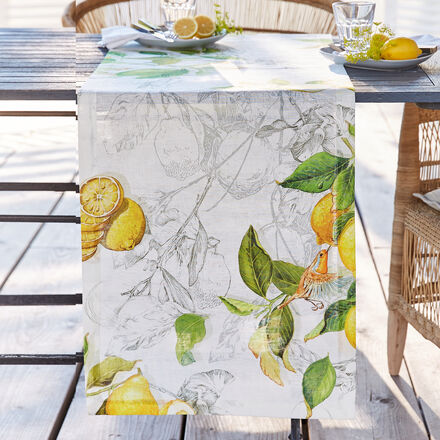 Aus toskanischer Traditionsweberei Mediterranes Zitronenmotiv Zeitlos, elegant und strapazierfähig Feinwäsche 40 °C In einer traditionsreichen Weberei nahe Florenz, die seit 1947 besteht, wird diese zeitlos-schöne Tischwäsche gefertigt. Das mediterrane Zitronenmotiv bringt frische Akzente und italienisches Flair auf den Tisch. 100 % Leinen (190 g/qm), strapazierfähig, sauber- und fest vernähte Ränder, Feinwäsche 40 °C.
