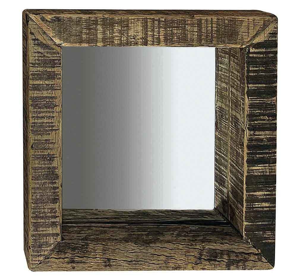 Der Wandspiegel ist in rustikaler Altholz-Optik aus massivem Naturholz gefertigt und ist ein außergewöhnliches Dekoaccessoire für Diele und Flur. Der Rahmen wurde mit viel Liebe zum Detail aus schwerem Massivholz gefertigt und rustikal patiniert. Die rustikale Struktur unterstreicht stilvoll den Altholz-Look und macht den Spiegel zum tollen Blickfang. Der Spiegel in kompaktem Format passt zu jedem Einrichtungsstil und ist ein tolles Dekostück in außergewöhlichem Design. Jeder Rahmen hat eine ganz eigene Maserung und macht jeden Spiegel zum individuellen Einzelstück! Maße: (H/B/T) ca. 25 x 25 x 5 cm.